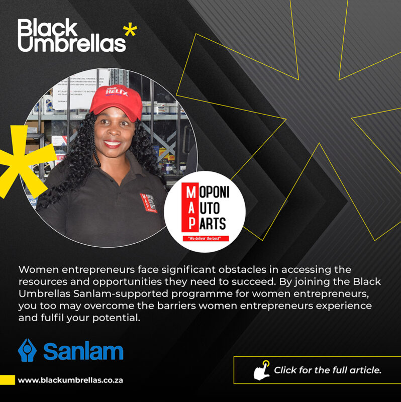 Women entrepreneurs face significant obstacles in accessing the resources and opportunities they need to succeed. By joining the Black Umbrellas Sanlam-supported programme for women entrepreneurs, you too may overcome the barriers women entrepreneurs experience and fulfil your potential.